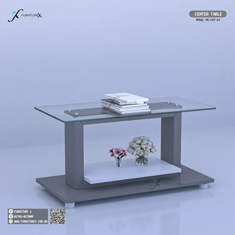 আমাদের সাথে যোগাযোগ করুন- Tempered Glass Top: Polished edge glass surface provides elegant look and easy maintenance.