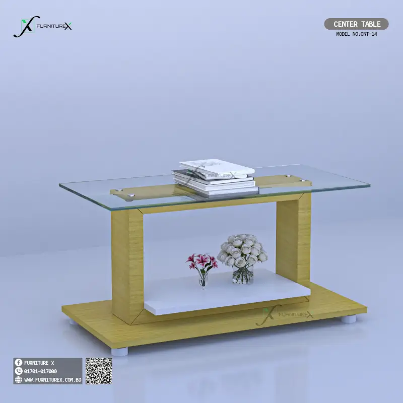 - Benefit: The Anvil-Center Table (WOOD) CET14 is easy to maintain and clean, thanks to its smooth glass surface and polished edges. Meanwhile, its durable materials ensure it can resist scratches and spills.