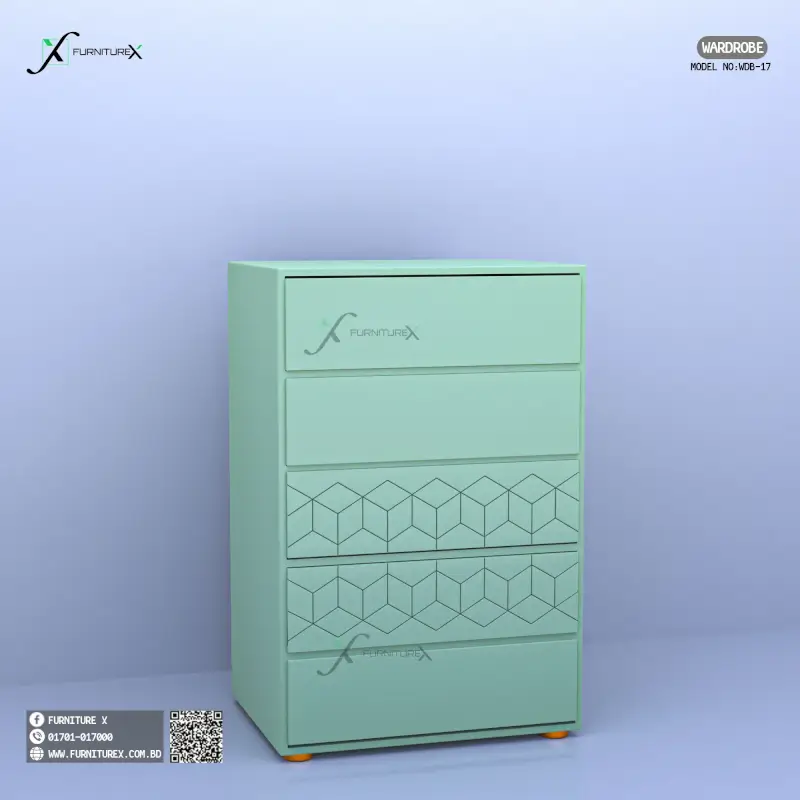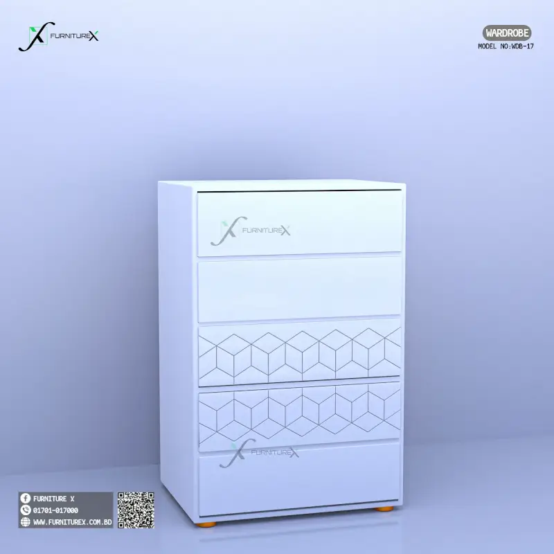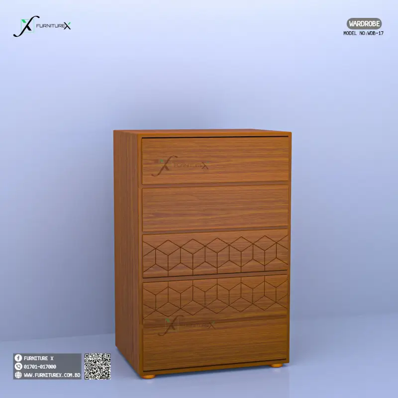 - Benefit: Five roomy drawers provide generous storage for clothing, accessories, and daily essentials. Two drawers feature a geometric pattern, adding visual interest without sacrificing function.