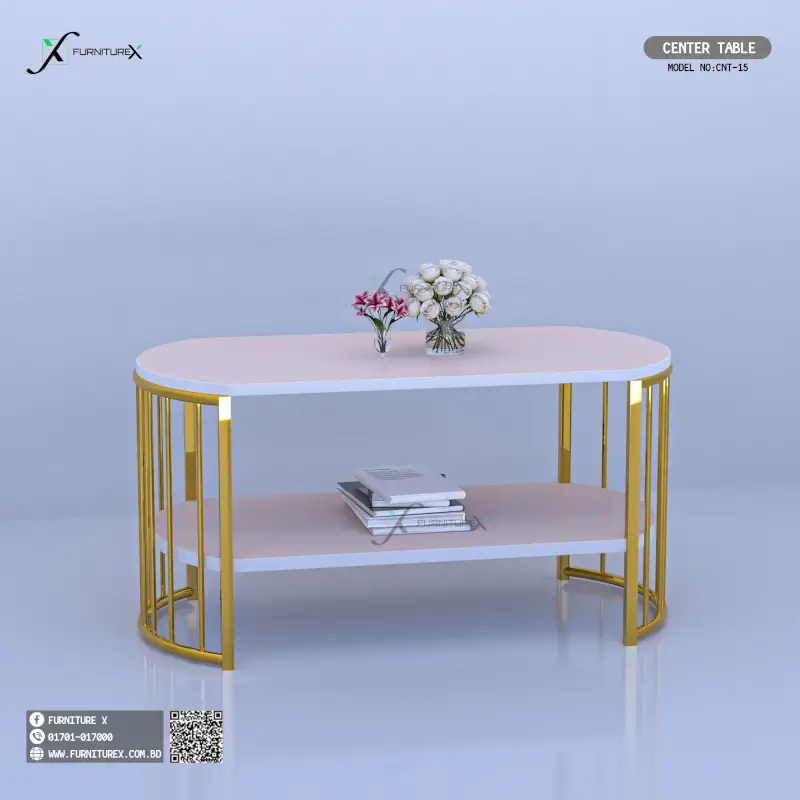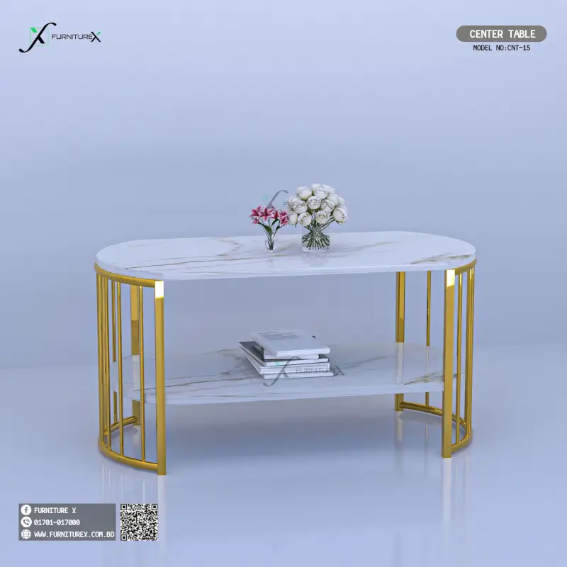 The Ruhi Center Table CET15 transforms your living room into a stylish, functional space that reflects modern elegance. Moreover, its premium quartz top and golden legs create a luxurious focal point. Furthermore, the water-resistant laminated board ensures long-lasting beauty and durability. Additionally, this versatile piece offers exceptional value for Bangladeshi homeowners seeking quality furniture.
